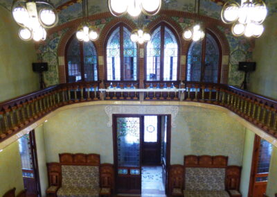 - Matières : fer forgé, vitrail, velours, brocart, soie, pierre