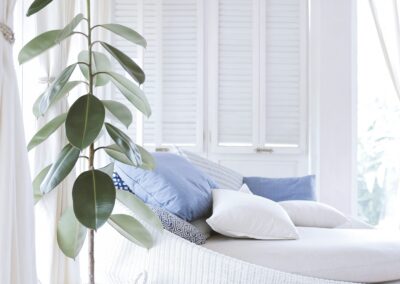 - Accessoires : textiles colorés, plantes vertes