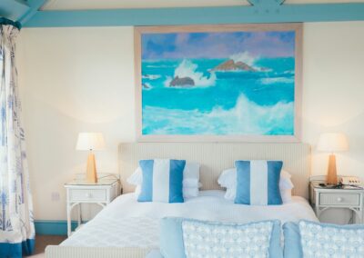 - Couleurs : nuances de bleus, de gris, blanc, beige, motifs marins et à rayures