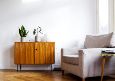 - Mobilier : bois, lignes fines et simples